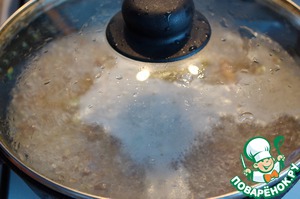Довести до кипения, накрыть крышкой и оставить на медленном огне минут 25-30, пока вода не выпарится.