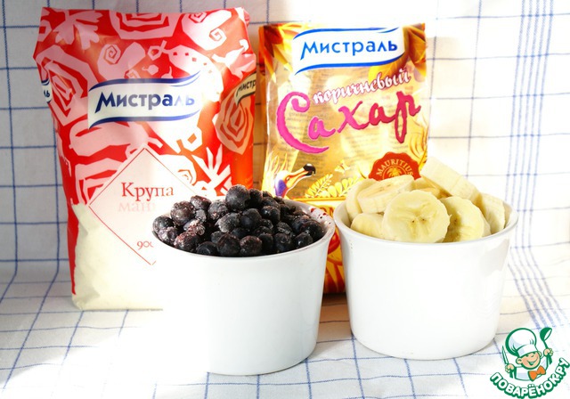 Достали манку Мистраль и коричневый сахар из ящика, фрукты - из холодильника. -
