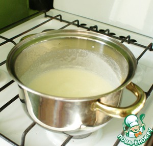 На воде варим просто и быстро манку, не забываем помешивать, чтобы не было комочков. Добавим коричневый сахар и пару крупинок соли.