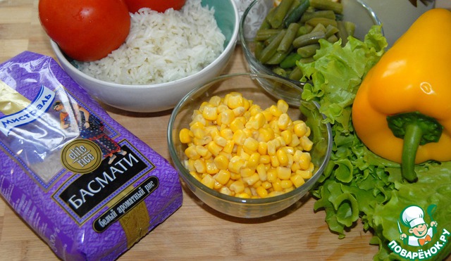 Ингредиенты для «Постный салат из риса с зеленой фасолью»: