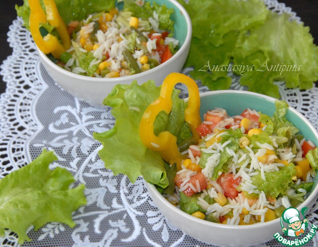 Рецепт «Постный салат из риса с зеленой фасолью»: