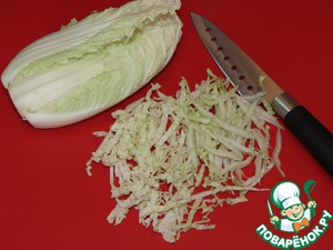 Пекинскую капусту нашинковать широкими лентами, петрушку мелко порубить.