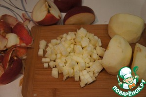 Яблоки очистить, нарезать небольшими кубиками, сложить в миску и сбрызнуть лимонным соком.