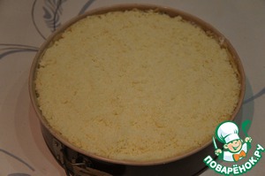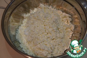Оставшуюся муку (200 г), сахар (90 г) и сливочное масло (125 г) смешать руками до образования крошки.