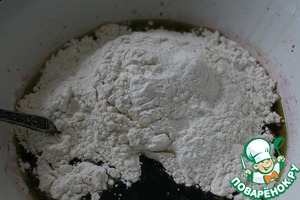 Насыпаем муку. Мука у всех разная, поэтому может потребоваться чуть больше/меньше.