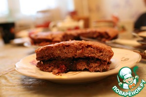 Разрезаем пополам, кладем верхнюю часть отдельно и смазываем растопленным шоколадом, манным кремом, медом, или еще чем-нибудь вкусненьким))