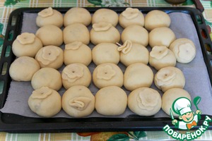 Сначала всё тесто делим на одинаковые кусочки примерно по 50 г.