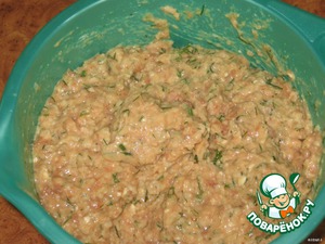 К фаршу добавляем соль, перец, приправы, взбитые яйца, майонез (сметану), муку, давленый чеснок. Хорошо вымешиваем.