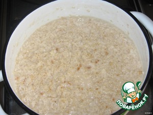 Присоединяем готовые отварные хлопья. Опять все хорошо вымешиваем.