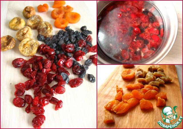 Мягкие сухофрукты промыть водой, твердые – замочить в горячей воде на 15мин.