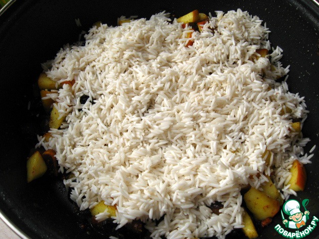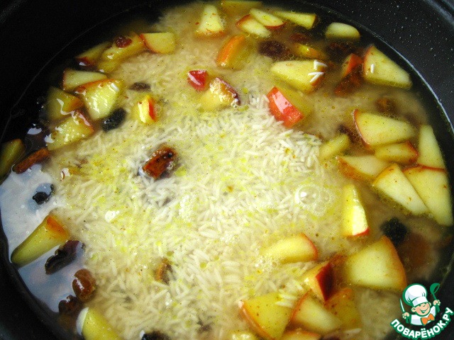 Рецепт «Пряный рис с яблоками и сухофруктами»: