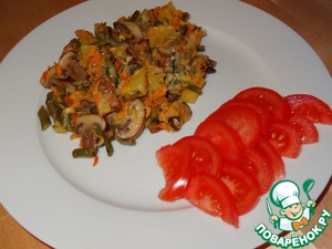 Рецепт «Нежный картофель с шампиньонами и стручковой фасолью»: