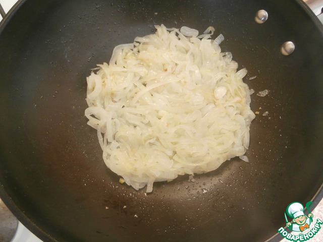 Обжариваю нарезанный полукольцами лук, пока он не станет прозрачным |