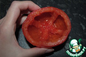 Ну вот мой маленький дегустатор, проверяет, что же там под шапочкой помидорыча. Приятного аппетита!