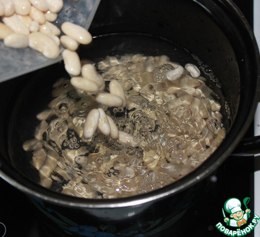 Фасоль белую ТМ "Мистраль" промыть и замочить в 1 литре воды на ночь