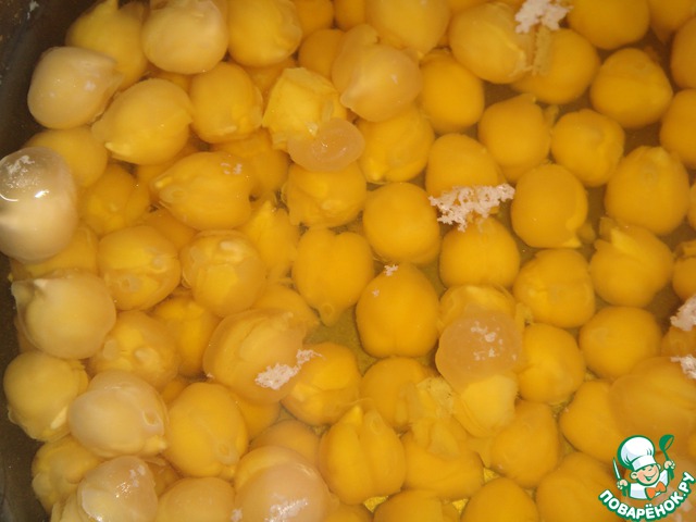 Воду сливаем, наливаем новую, доводим до кипения, убавляем огонь и варим 50 минут, остужаем