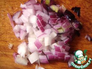 Мелко режем половинку красного лука, добавляем все в кастрюлю