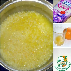 Рис промыть, залить водой, добавить апельсиновый сок, цедру и сахар, варить до готовности.