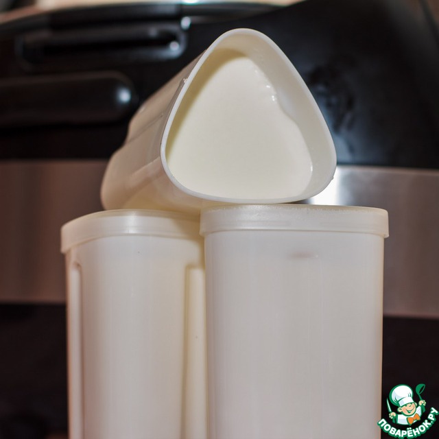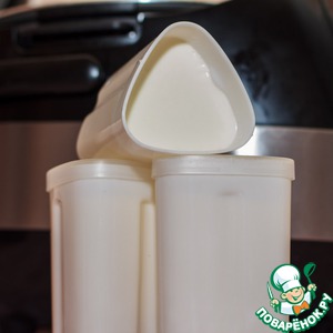 Выбираем режим "Йогурт" и ставим время 8 часов. После сигнала охлаждаем до комнатной температуры и отправляем в холодильник на 6 часов. -