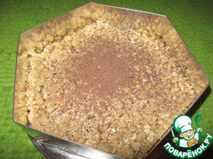 Поверх начинки равномерно распределяем тесто. Верх украшаем по вкусу шоколадной крошкой, кунжутом.
