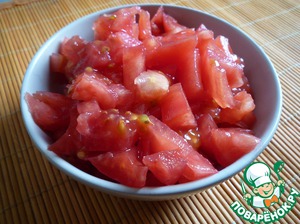 Очищенные от кожицы помидоры мелко нарезаем. -