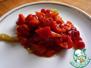 Как овощи запекутся, снять кожицу и тоже мелко нарезать.