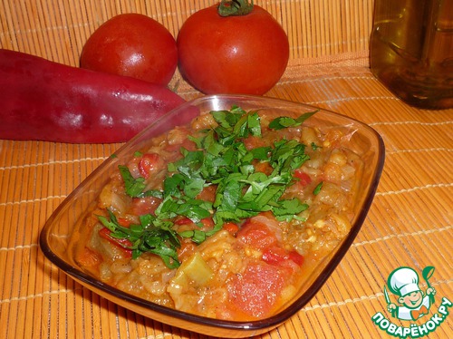 Предварительно запечем в духовке при 200 град баклажаны (30-40 мин.) и перец (20-30 мин.).