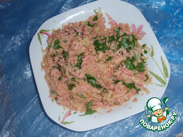 Добавить яйцо, майонез (сметану), соль, перец, зелень по вкусу. Перемешать.