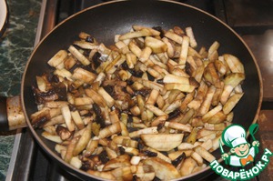 В сковороде разогреть пару ст. л. растительного масла и обжарить баклажаны вместе с шампиньонами 3 минуты.