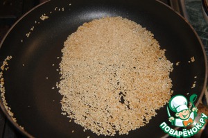 На сухой сковороде слегка обжарить кунжутные семечки.