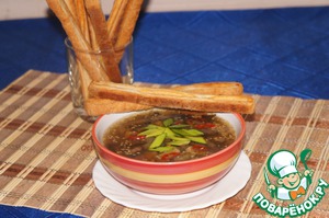 Насыщенный грибной супчик с двумя видами грибов: сухих и свежих. Неожиданное сочетание - новый вкус!!! Идею почерпнула из журнала"Школа гастронома", правда, я его совсем переделала на свой лад...