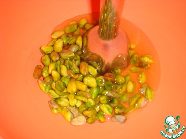 • Добавить к фисташкам мед,1 столовую ложку воды.