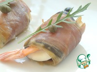 Рецепт "Закуска из баклажана, моцареллы и креветок в пармской ветчине" :