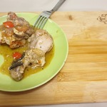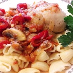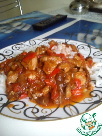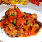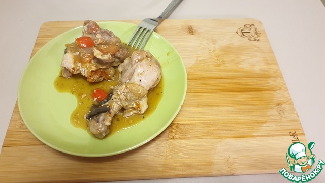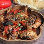 Рецепт из журнал "Гастроном" греческое издание. Это - курица по-охотничьи и немного истории об этом названии: "-В переводе с итальянского cacciatorе - охотник, а блюда алла каччиаторе (птица или заяц) приготовлены в кастрюле -состоят из красного соуса, овощей-перца, моркови и даже маслин. Считается, что возвращаясь домой из леса, охотники вместе с добычей приносили грибы и ароматные дикие травы, короче, всё, что находили по дороге, поэтому состав ингредиентов зачастую зависел от времени года и местности. От себя добавлю, что это очень вкусное, ароматное и сытное блюдо!!!