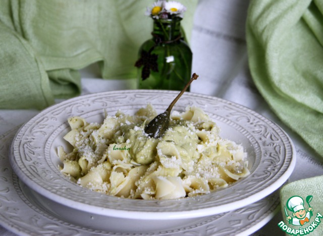 Спагетти с авокадо подавать в горячем виде. Посыпать пармезаном и каперсами по вкусу.