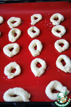 Выкладываем печенье на противень, покрытый силиконовым ковриком или пекарской бумагой.