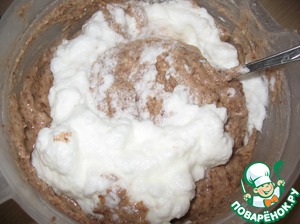 Постепенно, аккуратно мешая ложкой, вводим взбитые белки в тесто.