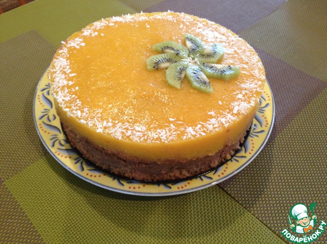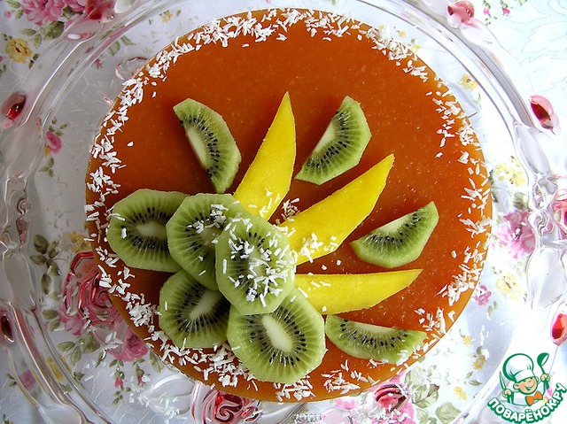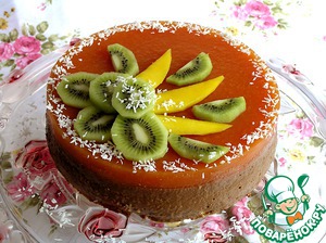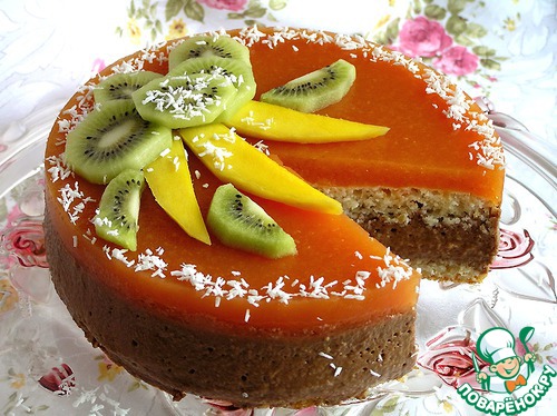 [+5]В ингредиентах , правда, не указано, сколько масла нужно, ну я на глаз добавила. И еще у меня бисквит получился очень невысоким, я не рискнула его разрезать, просто испекла еще один такой же . А в место папайи использовала персики.
