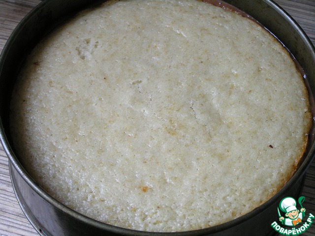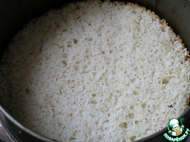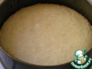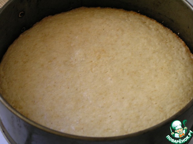 Бисквит разрезать на 2 коржа, выложить в форму первый корж