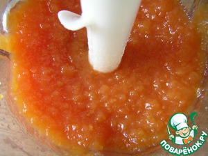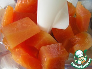 Приготовить желе из папайи. Агар-агар замочить в воде до набухания. Папайю пюрировать с помощью блендера.