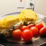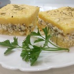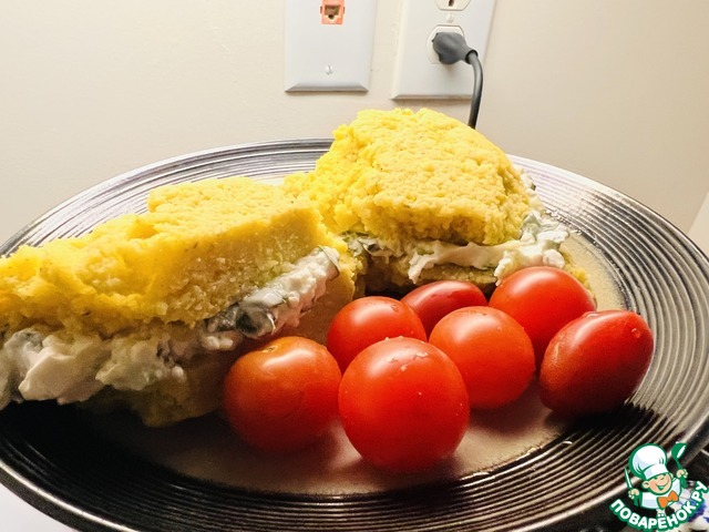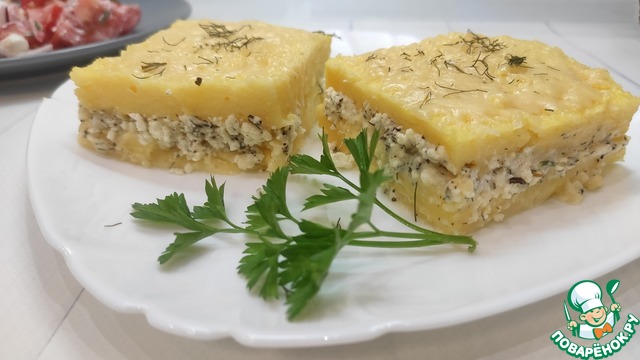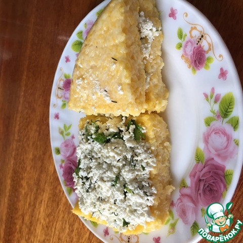 Разрезать остывшую кукурузную кашу на равные прямоугольники.
