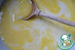 Яйца растереть с сахаром, добавить соль и перемешать.