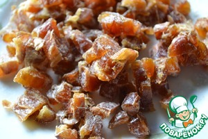 Финики обсушить на бумажном полотенце и порезать мелкими кусочками. Перемешать с небольшим количеством муки.