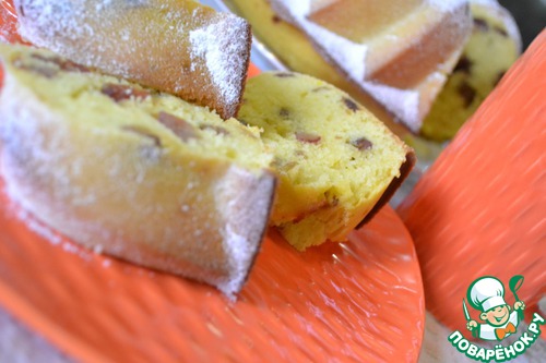 Очень простой в приготовлении, нежный кекс. Приятный желтенький цвет придает кукурузная мука. Структура кекса пористая с вкраплением кусочков ароматных фиников. Угощайтесь!