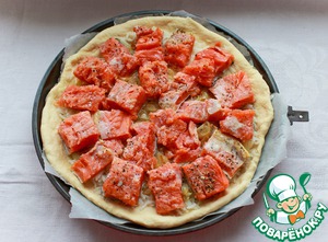 Половину теста раскатываем в пласт, укладываем в подготовленную форму, формируя бортики.