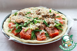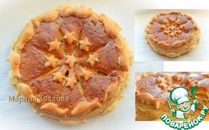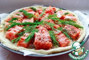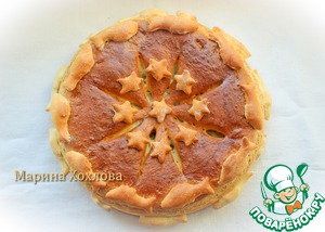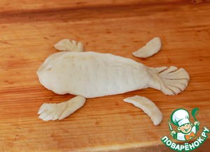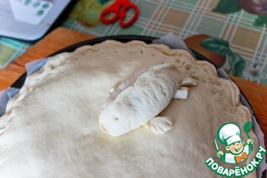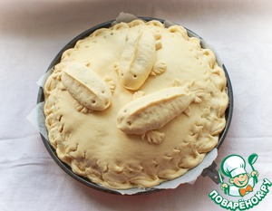 Кладём наше украшение-рыбку на поверхность кулебяки.