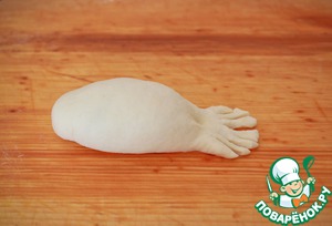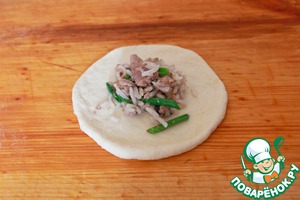 50 гр. теста раскатываем как на пирожок и кладём начинку. -
