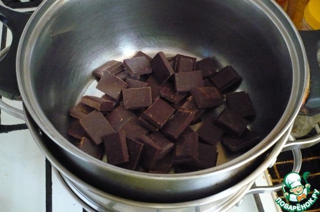 Шоколад поломать на маленькие кусочки и растопить на водяной бане.