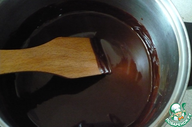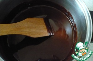 После того как шоколад растопится кладем туда сливочное масло и мешаем до полного его растворения. Масса должна быть однородной. Убрать с огня и дать остыть.