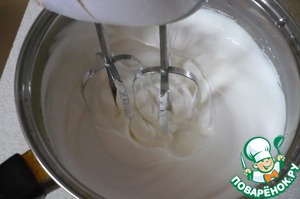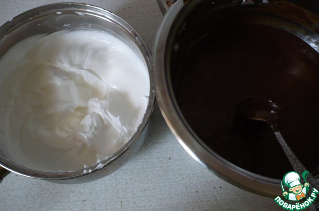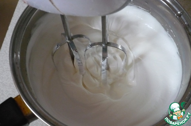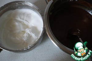 Пока шоколадная смесь остывает мы отделяем белки от желтков. Белки взбиваем с 1/2 сахара